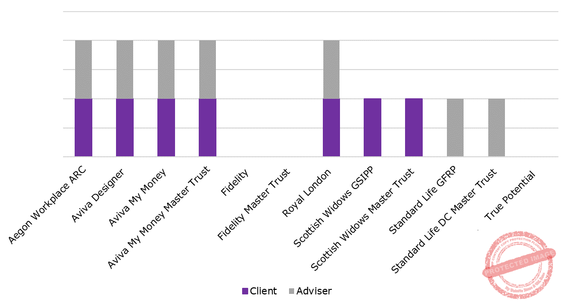 When it comes to who the tool was primarily built for, different workplace pension providers seem to have taken different approaches. Scottish Widows GSIPP and Scottish Widows Master Trust only allow the client access to the tool. Standard Life and Standard Life DC Master Trust only allow the adviser access. Aegon Workplace ARC, Aviva Designer, Aviva My Money, Aviva My Money master Trust and Royal London allow both the client and adviser access to the asset allocation tool. True Potential do not allow the client or the adviser access.