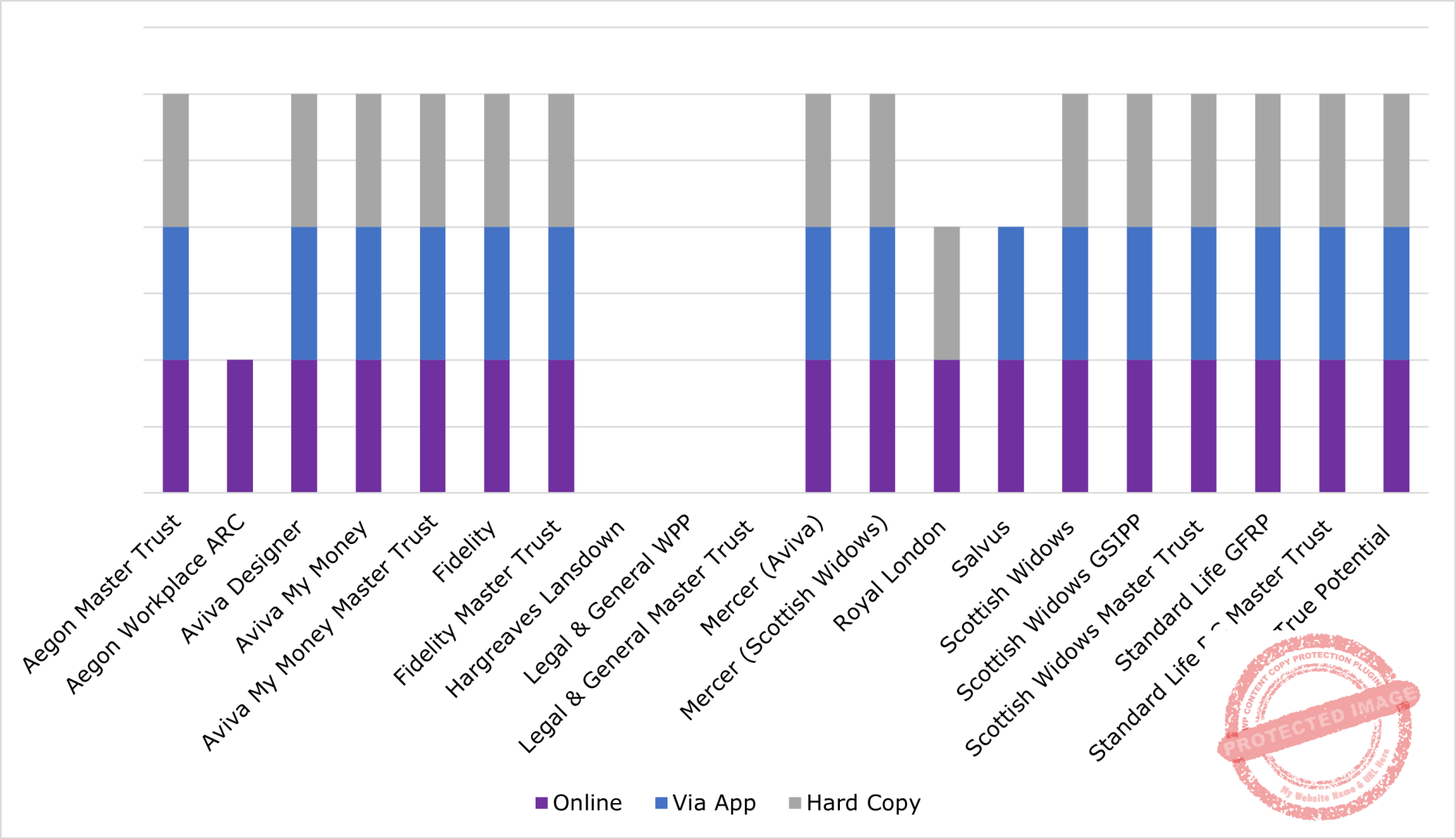 As part of their financial wellness proposition, our data shows that 85% of workplace pension providers offer their members savings statements. Those who offer statements allow members to access these online, via mobile device or as a hard copy document.