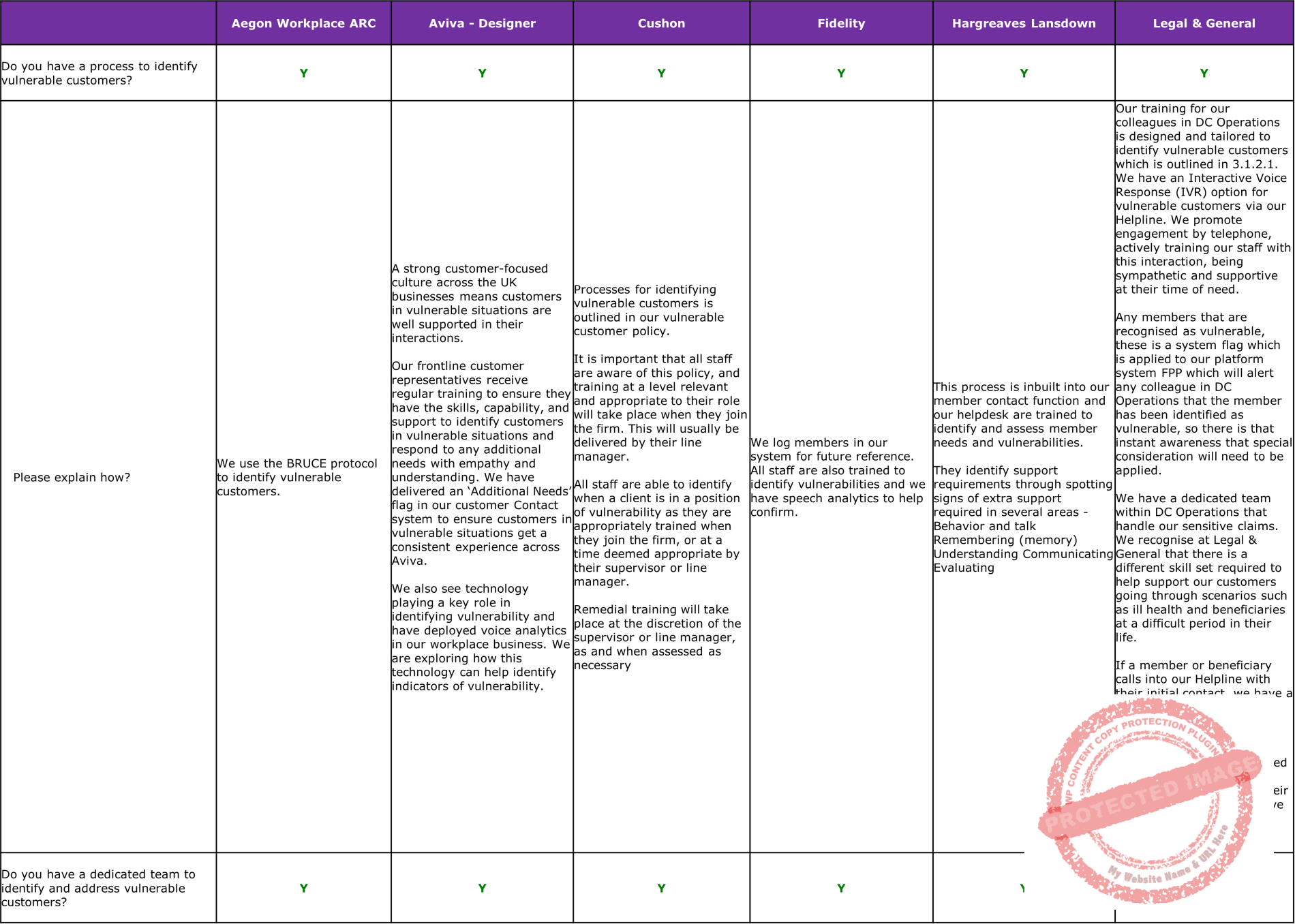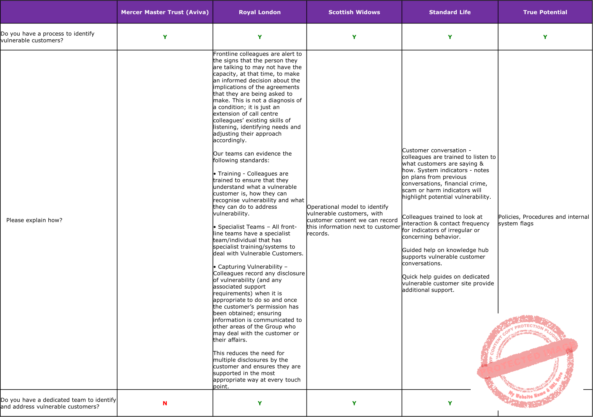 All providers in our analysis, other than Mercer Master Trust and True Potential also have confirmed that they have a dedicated team to identify and address vulnerable customers.