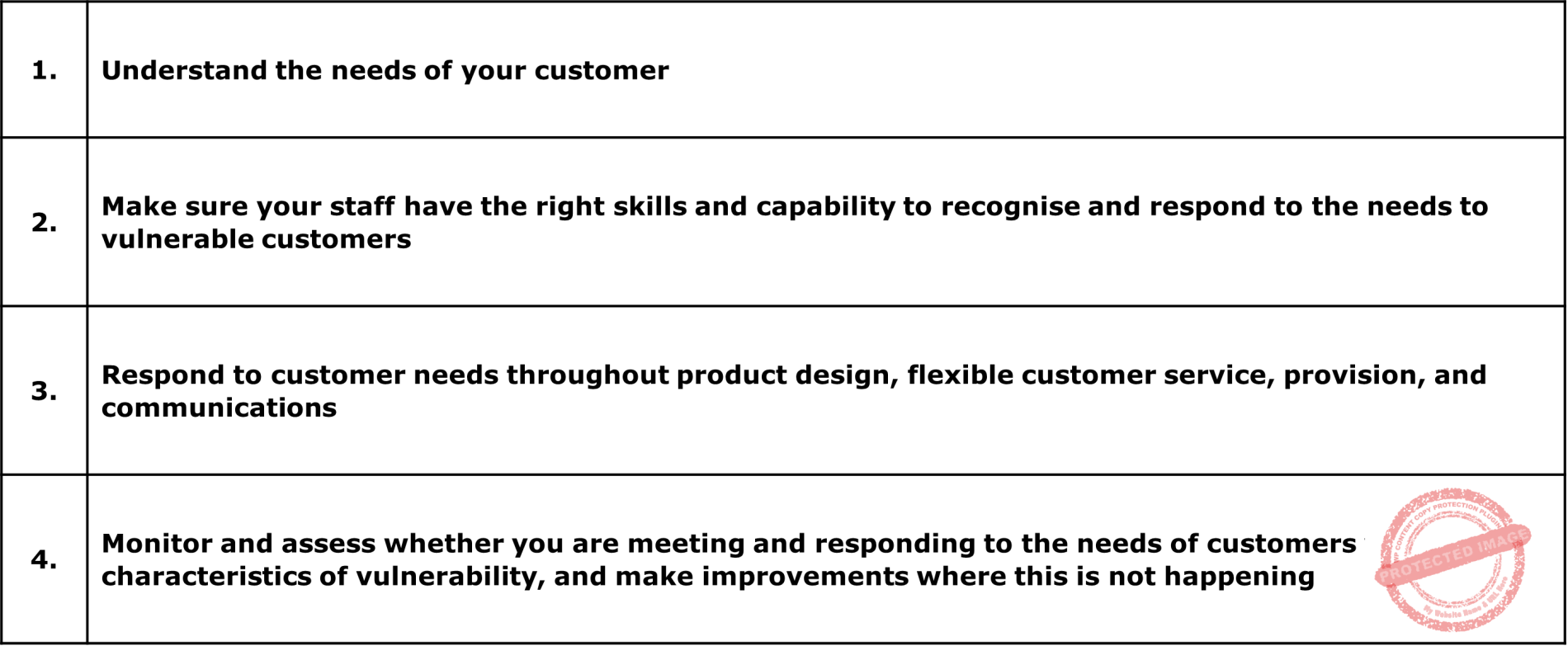 When it comes to the third point and responding to customer needs, all providers are considering vulnerable clients throughout product design, flexible customer service, provision, and communications.