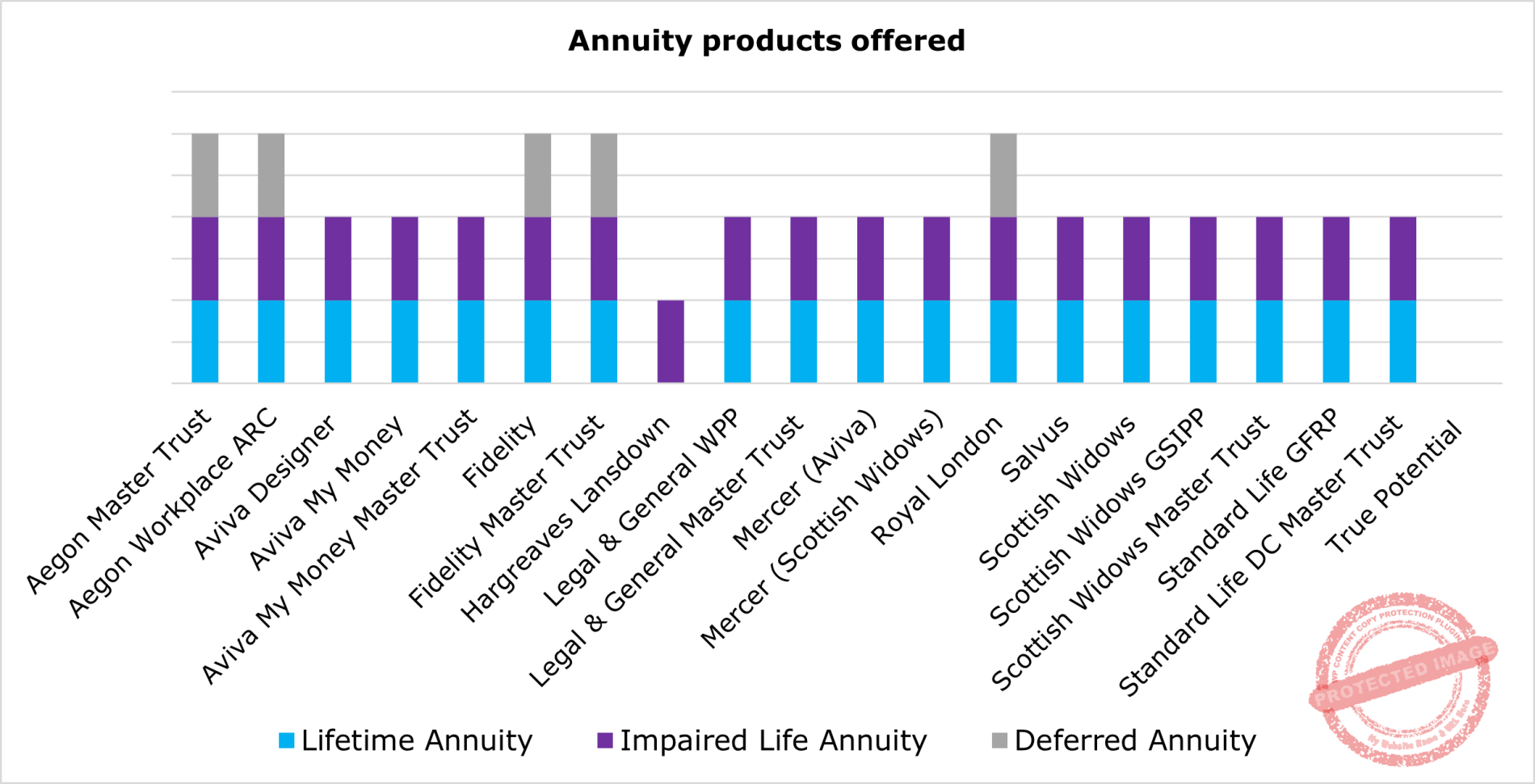 True Potential are the only providers who do not currently offer any form of annuity product as part of their workplace pension proposition.