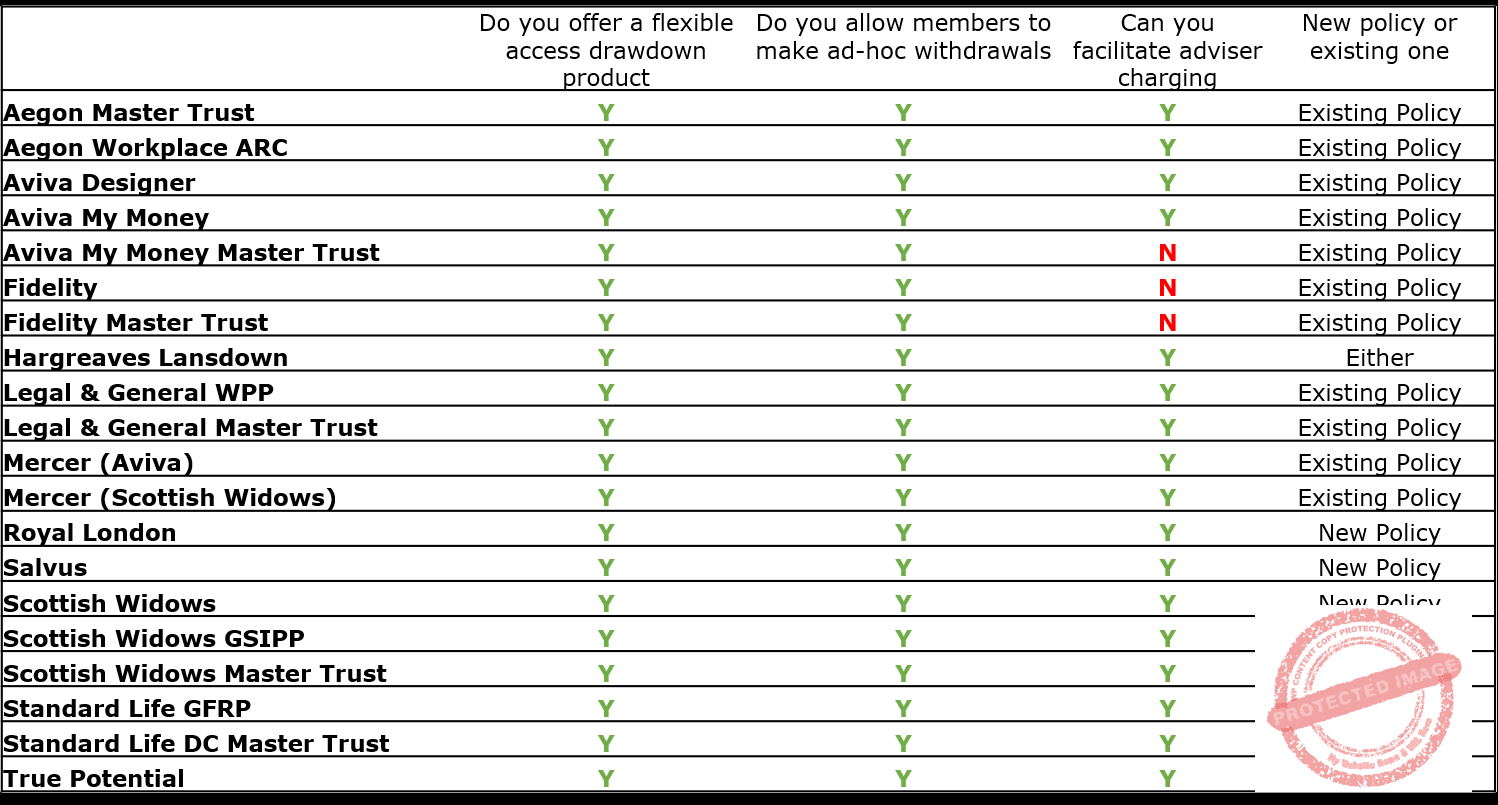 Flexible access drawdown products have become an important part of the pension freedoms product picture and our data shows that all providers offer these as part of their proposition and have also all confirmed that they allow members to make ad-hoc withdrawals.