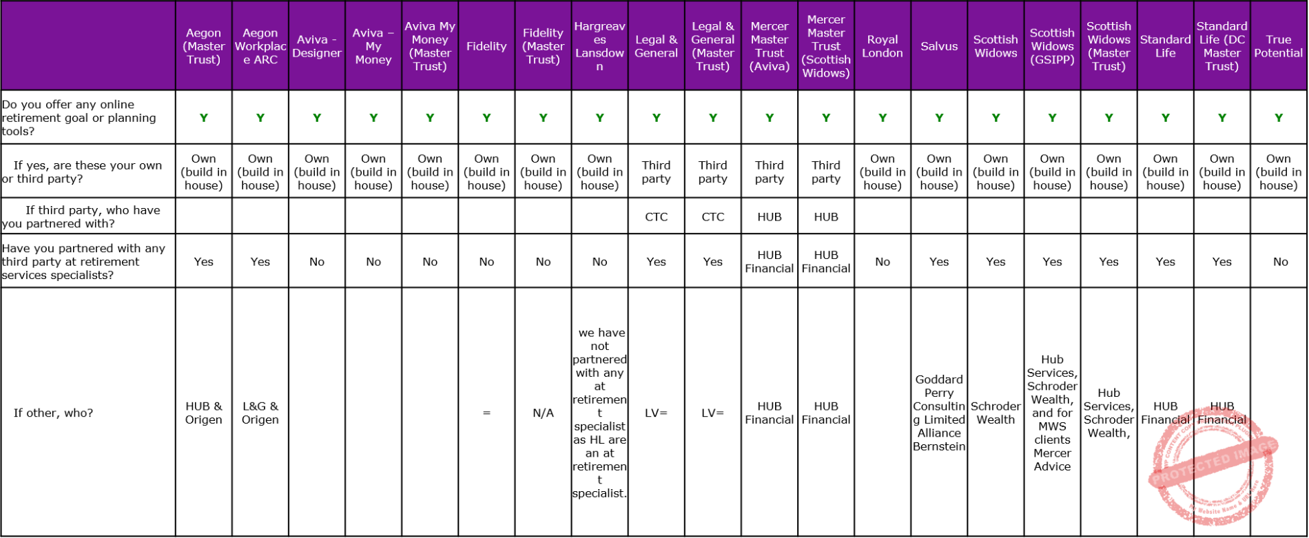 For the most part such tools are the providers own and built in-house, however two providers are using third party software. Legal & General have partnered with CTC Software for theirs and Mercer Master Trust are using technology from HUB Financial.