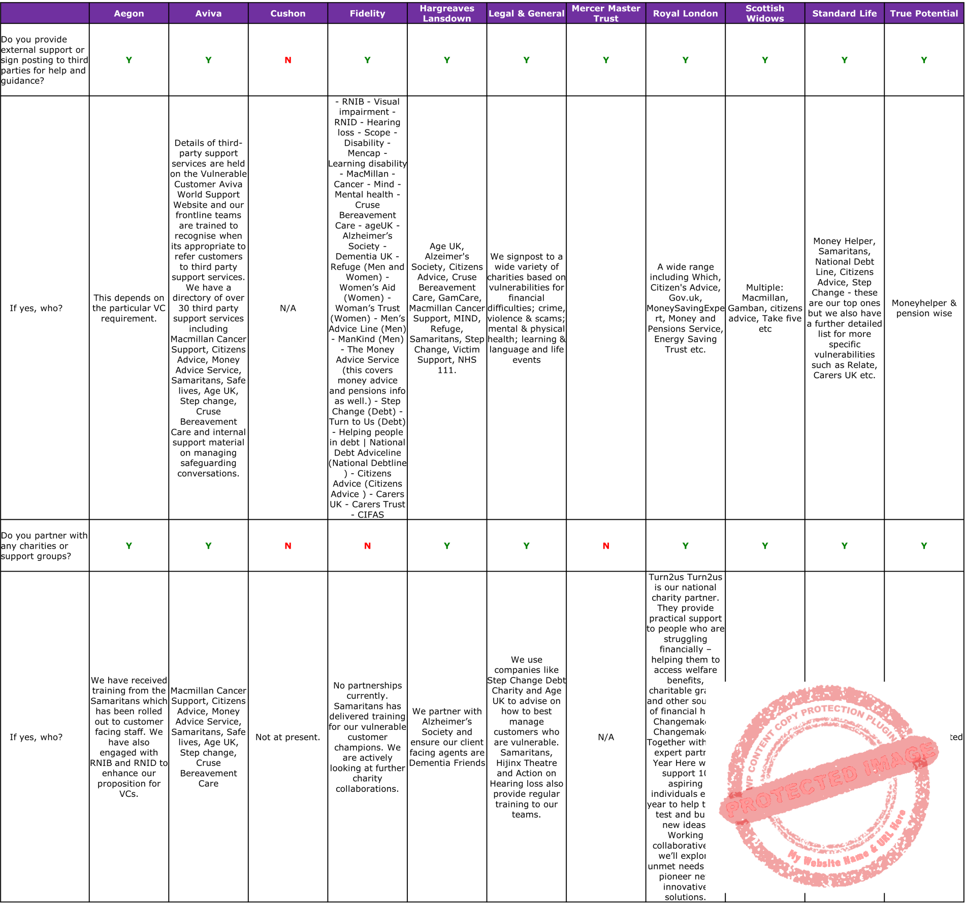 Three quarters of providers have also stated that they have partnered with various charities or support groups. Those who currently do not are Cushon, Fidelity and Mercer Master.
